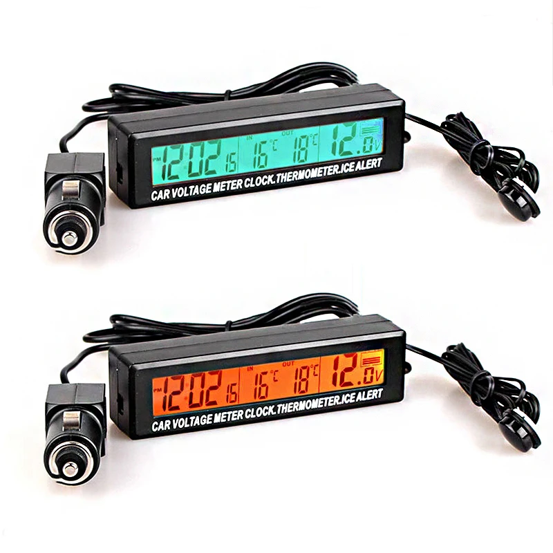 ONEWELL автомобиль черный авто часы напряжение Цифровой ЖК-дисплей автомобиля температура термометр будильник с прикуривателя кабель