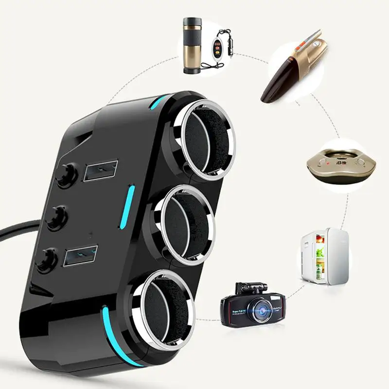Портативный двойной зарядное устройство usb 3 отверстия Универсальный 12 V-24 V навигатор вождения Автомобильный видеорегистратор MP3 вольтметр, прикуриватель