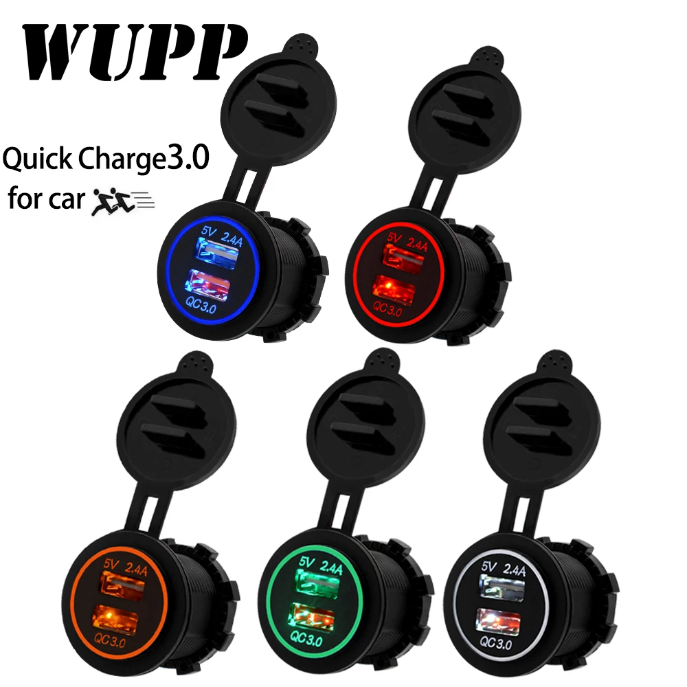 WUPP QC 3,0 мощность Разъем автомобиль Быстрый зарядное устройство Dual USB автомобиля DC12V-24V водонепроница 5 В/3.4A 2 порты и разъёмы зарядки