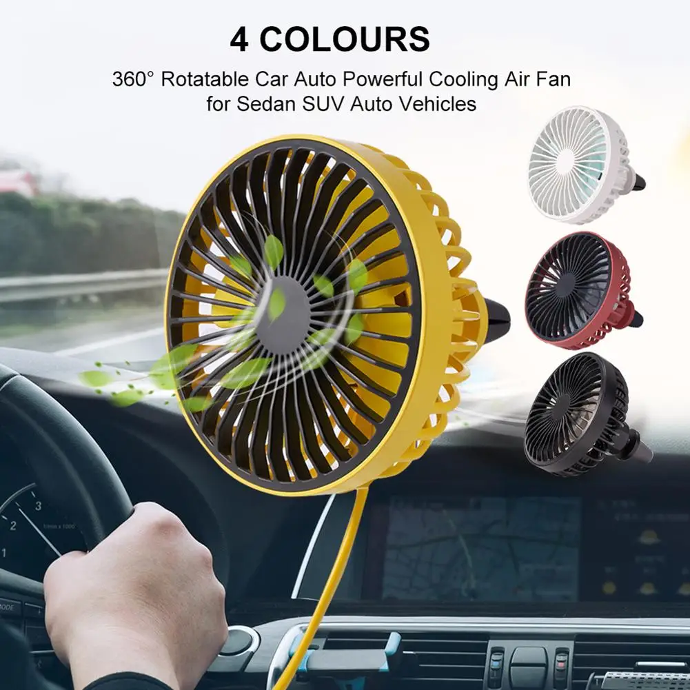 Автомобильный вентилятор с поворотом на 360 градусов, крутые цветные светодиодные лампы и USB питание, автомобильный Мощный охлаждающий вентилятор для автомобильного вентиляционного отверстия