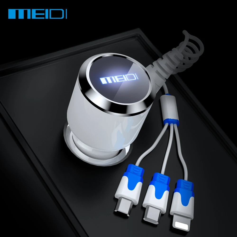 MEIDI автомобильное зарядное устройство адаптер с 3 зарядный кабель для iPhone тип-c Android мобильный телефон зарядное устройство в автомобиле