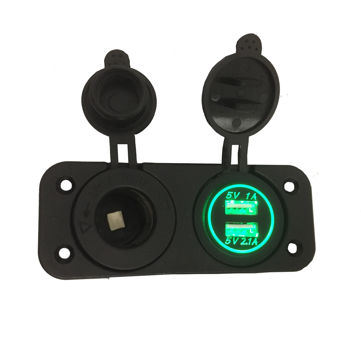 DC 12 В -В 24 в прикуриватель + двойной USB разъем питания панель 2.1A/1A USB зарядное устройство для автомобиля лодка мотоцикл зеленый синий красный ж...