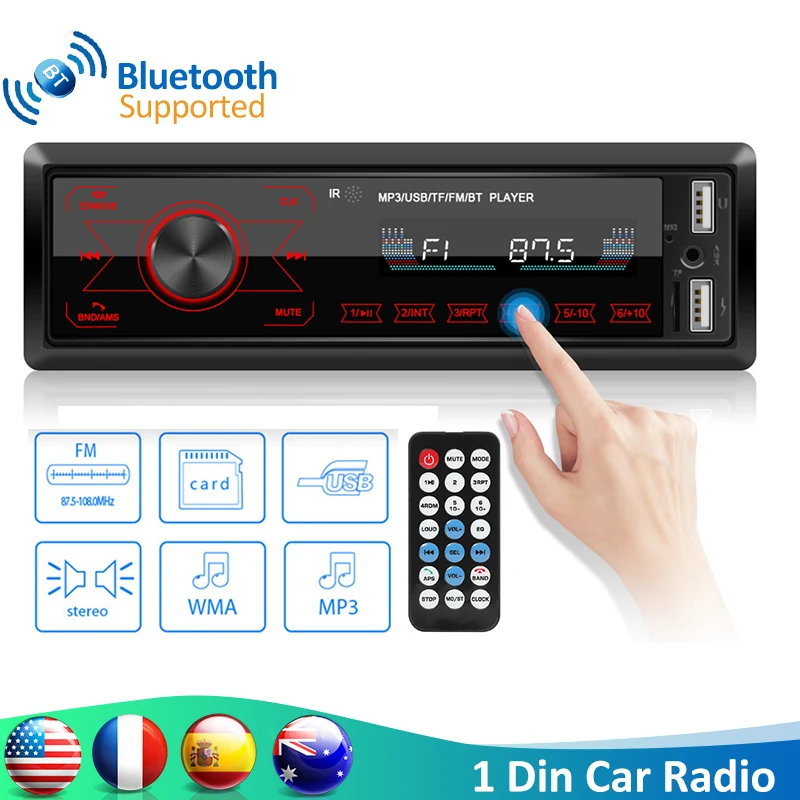 VODOOL 1DIN автомобильный Радио сенсорный ключ стерео пульт дистанционного управления Bluetooth Авторадио аудио Музыка 12 В Автомобильный MP3-плеер USB/TF/AUX-IN