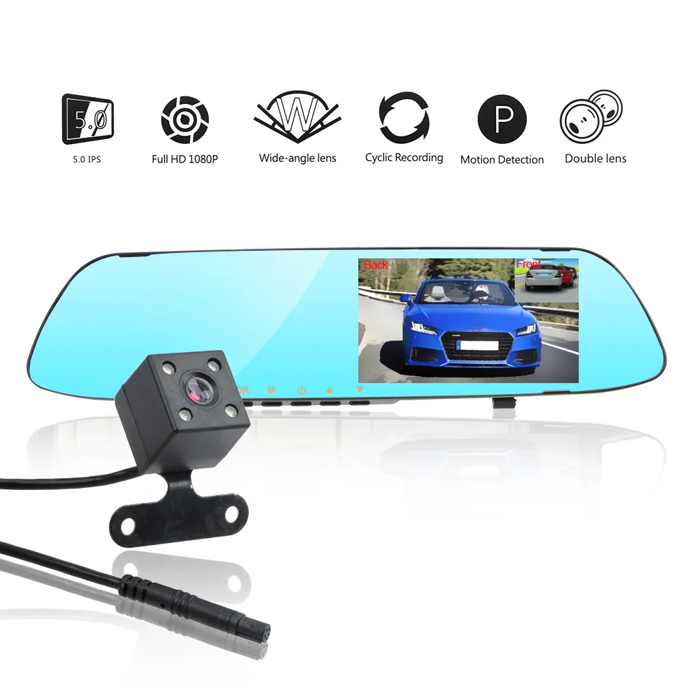 LEEPEE Двухканальное зеркало заднего вида, видеорегистратор для автомобиля, видеорегистратор, видеорегистратор, IPS экран, ночное видение, реверсивное изображение 30 см