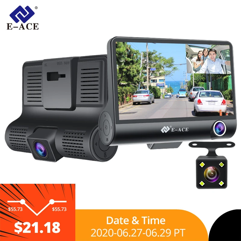 E-ACE B28 Автомобильный видеорегистратор 4 дюйма 3 объектив камеры Dashcam FHD 1080P авто видеорегистратор регистратор с камерой заднего вида