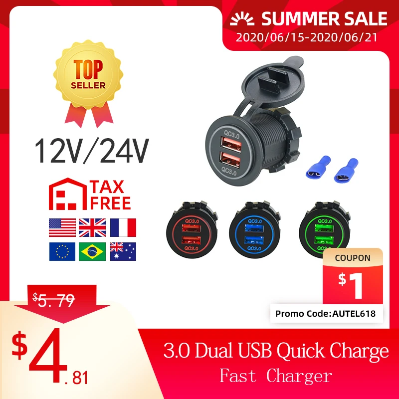 Dual USB Quick Charge 3,0 светодиодный быстро Зарядное устройство для 12 V/24 V Авто Лодка мотоциклов внедорожник автобус; грузовик; легковой автомобиль а...