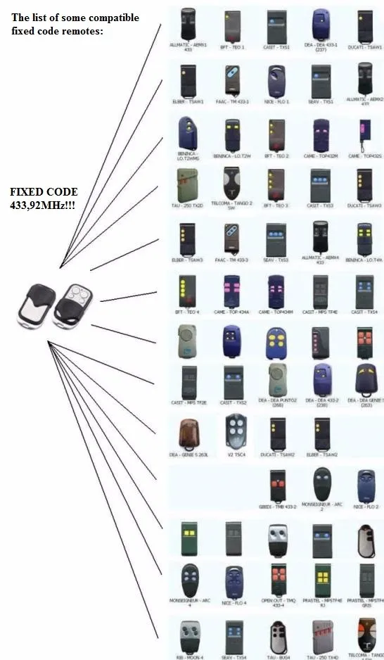 433,92 МГц фиксированный код FAAC, Beninca, V2, RIB, TAU пульт дистанционного управления Дубликатор передатчик замена, брелок