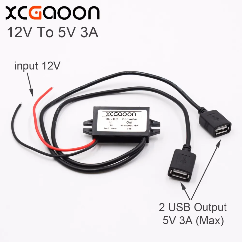Xcgaoon автомобиля dc-dc конвертер Модуль кабель с 2 USB Порты и разъёмы, ВХОД DC 12 В USB выход 5 В 3A, заряд для смартфона iPhone Мобильных
