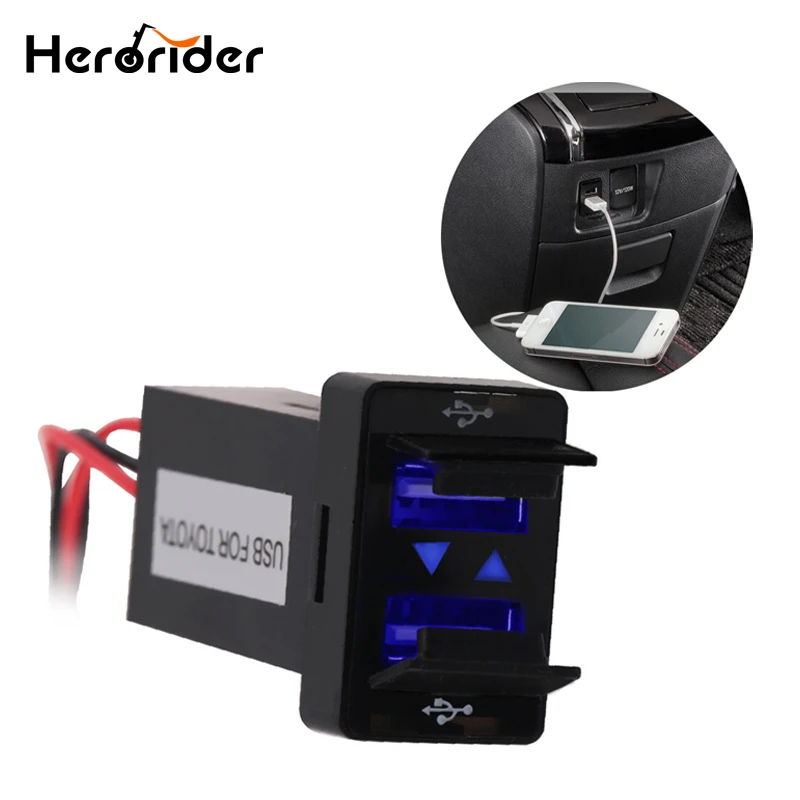 Herorider Dual USB Автомобильное зарядное устройство водостойкий 2.1A адаптер питания розетка для TOYOTA гнездо для зарядки USB Автомобильное зарядное у...