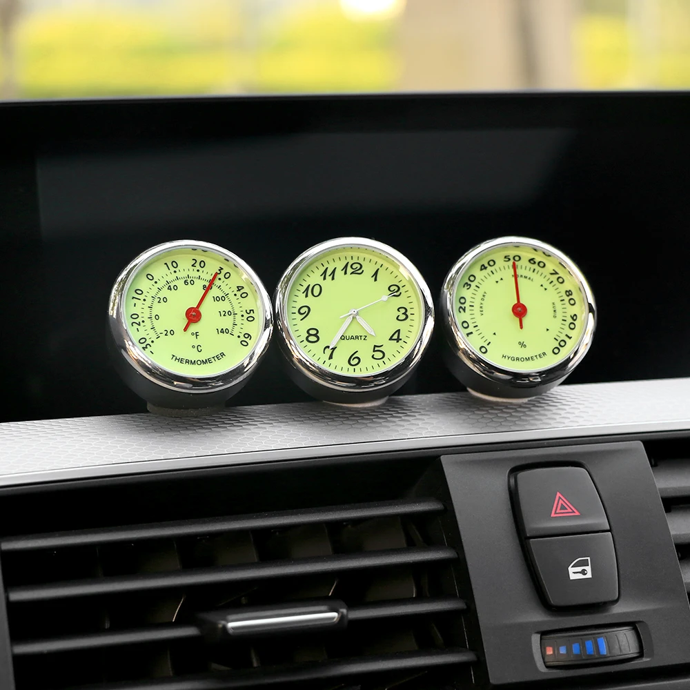 Светящиеся автомобильные часы, термометр, гигрометр, Автомобильные украшения для приборной панели автомобиля, украшения, автомобильные часы, аксессуары для стайлинга автомобилей