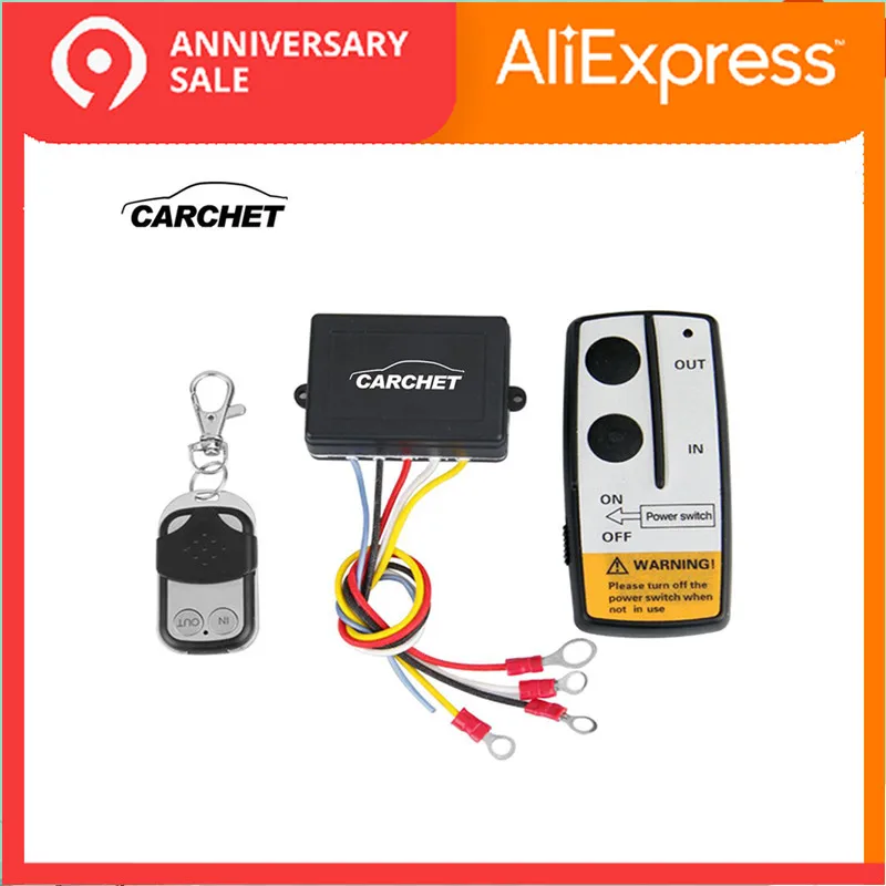 CARCHET Универсальный Беспроводной Лебедка пульт дистанционного Управление комплект 12 V 50ft 2 пульты с индикатор детектор для Грузовик Джип вне...