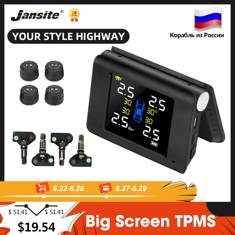 Jansite TPMS беспроводной автомобильный контроль давления в шинах интеллектуальная система светодиодный дисплей солнечной энергии с 4 встроенными или внешними датчиками