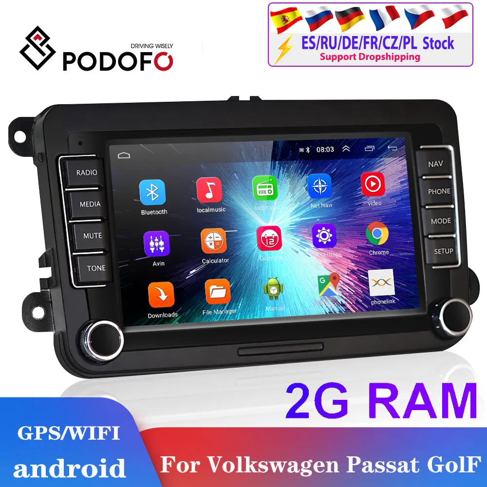 Podofo 2Din Android автомобильное радио для Volkswagen Автомобильный мультимедийный дисплеер автомобильный стерео для VW/Golf/Passat/SEAT/Skoda/Octavia Авторадио
