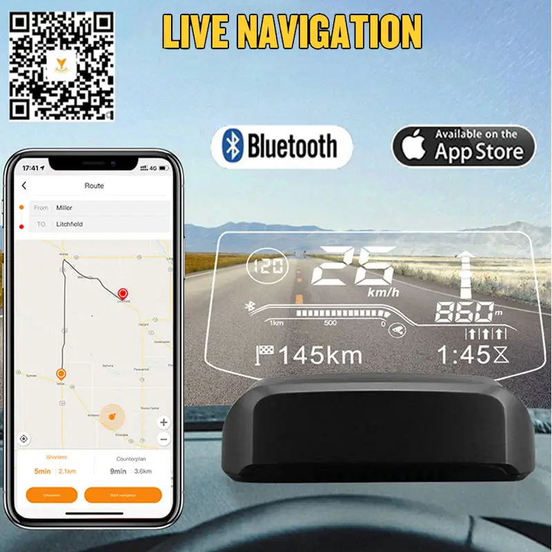 Бортовой компьютер с Bluetooth Live Navigation HUD OBD2 скорость расход топлива Дисплей Автомобильная электроника