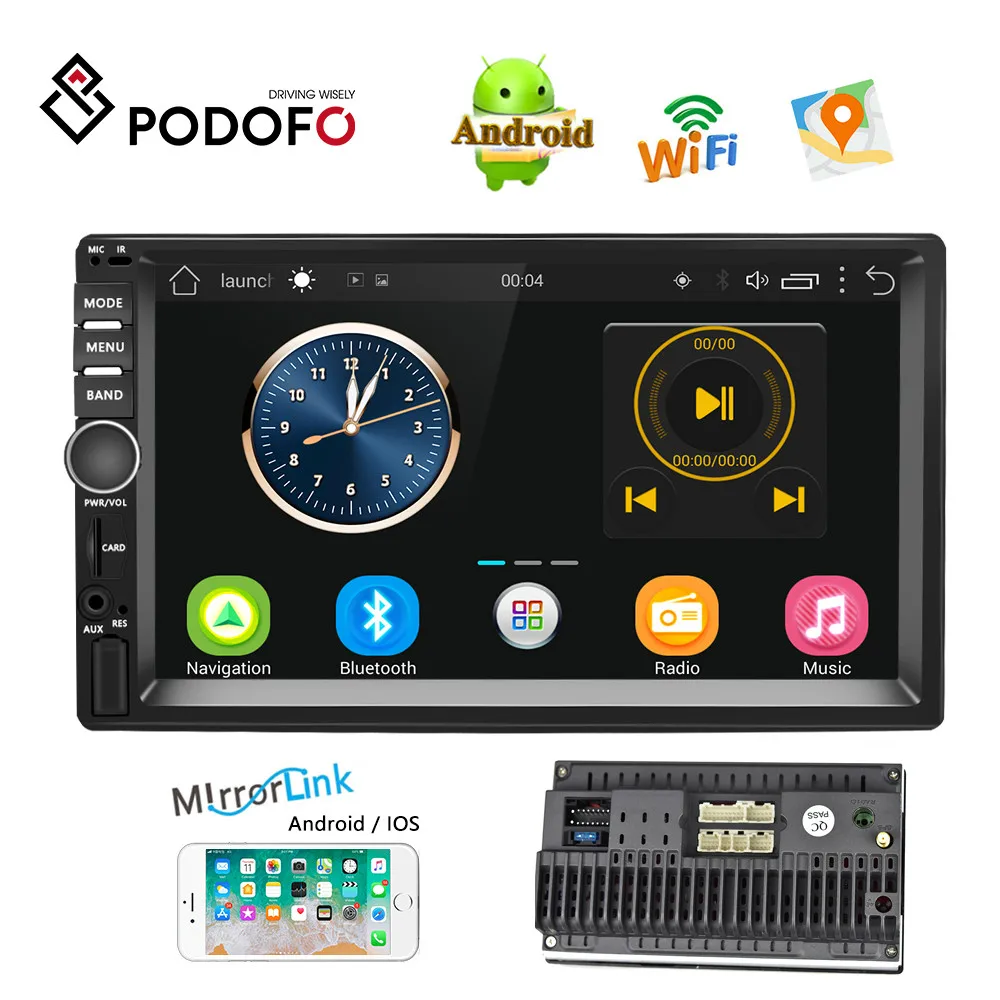 Podofo Автомагнитола 2 din 7 ''Android Автомобильная магнитола Стерео gps навигация Bluetooth USB автомобильный мультимедийный плеер аудио поддержка камеры