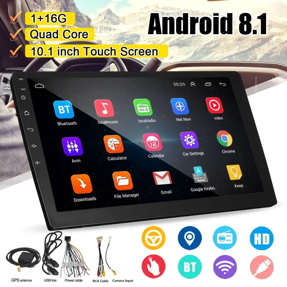 10,1 дюймов Android 8,1 Автомобильный мультимедийный плеер стерео 2DIN bluetooth wifi gps Nav четырехъядерный Радио Видео MP5 плеер