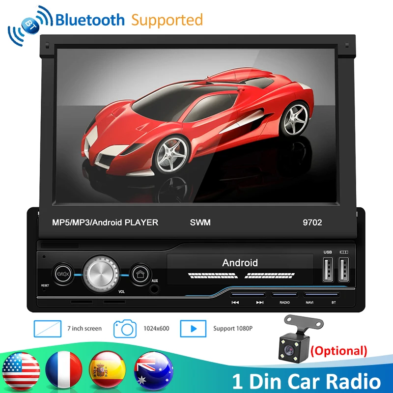 SWM 9702 1din Android 8,1 7 "сенсорный ручной выдвижной экран автомобильное радио Стерео Авторадио Bluetooth WiFi GPS Мультимедиа MP5 плеер
