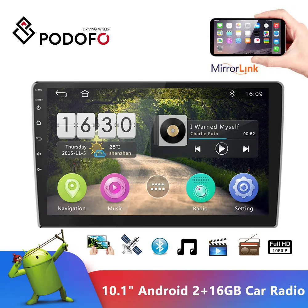 Podofo 9 "Android 2din автомобильное радио 2 + 16 Гб мультимедийный плеер Аудио Стерео Авторадио GPS Bluetooth WIFI Mirrorlink MP5 плеер радио