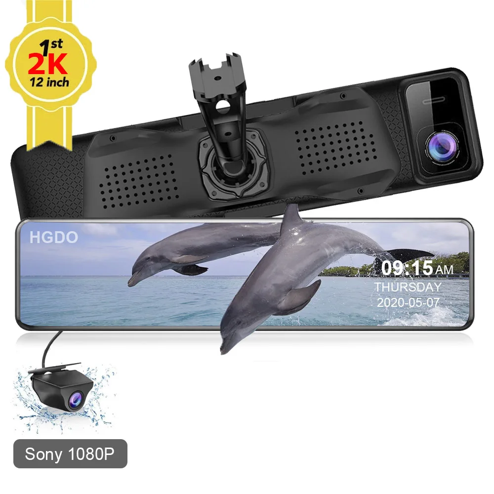 HGDO 12 ”Автомобильный видеорегистратор hissilicon 2K 1440P зеркало заднего вида Sony двойной объектив FHD 1080P Автомобильная камера заднего вида видеорегистратор с креплением
