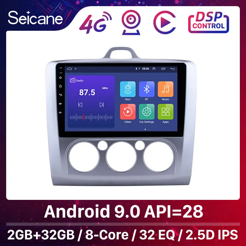 Seicane 2 DIN 9 дюймов Android 8,1 gps навигационный сенсорный экран четырехъядерный автомобильный Радио для 2004 2005 2006-2011 Ford Focus Exi AT