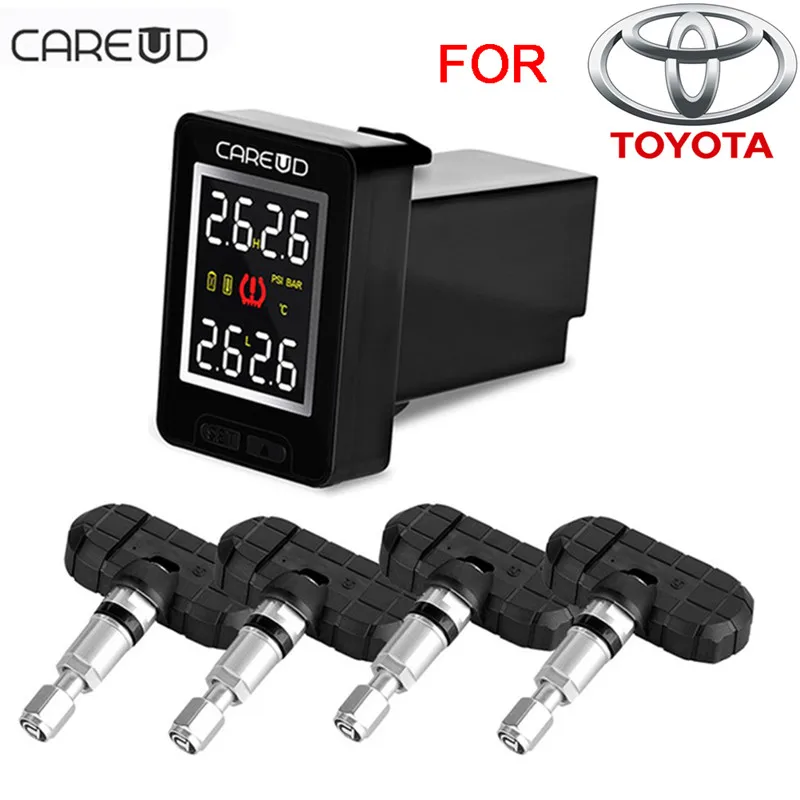 CAREUD U912 автомобиль TPMS Беспроводной авто шины Давление мониторинга Системы с 4 Встроенные датчики ЖК-дисплей Встроенный монитор для Toyota