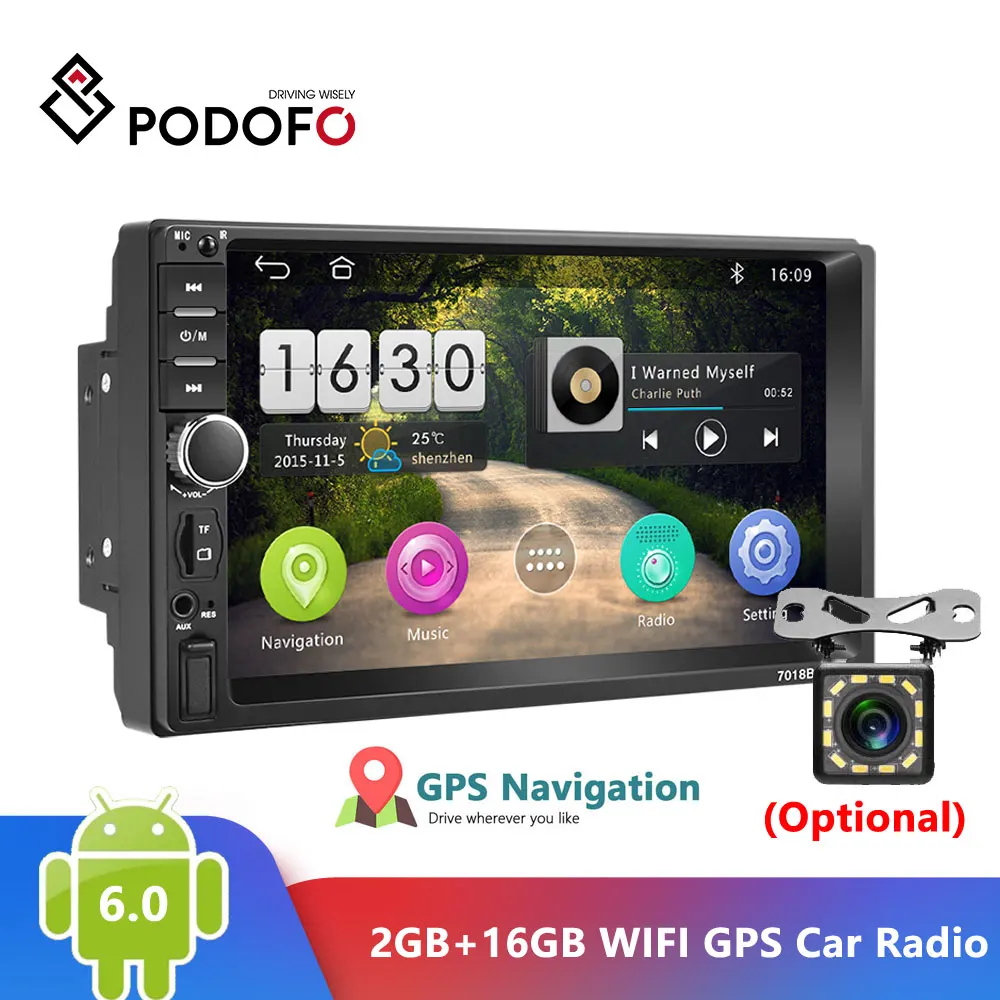Podofo Android 6,0 2 Din автомобильное радио ОЗУ 2 ГБ + ПЗУ 16 ГБ Android 7 ''2Din Универсальное автомобильное радио Авторадио GPS Мультимедиа устройство плеер