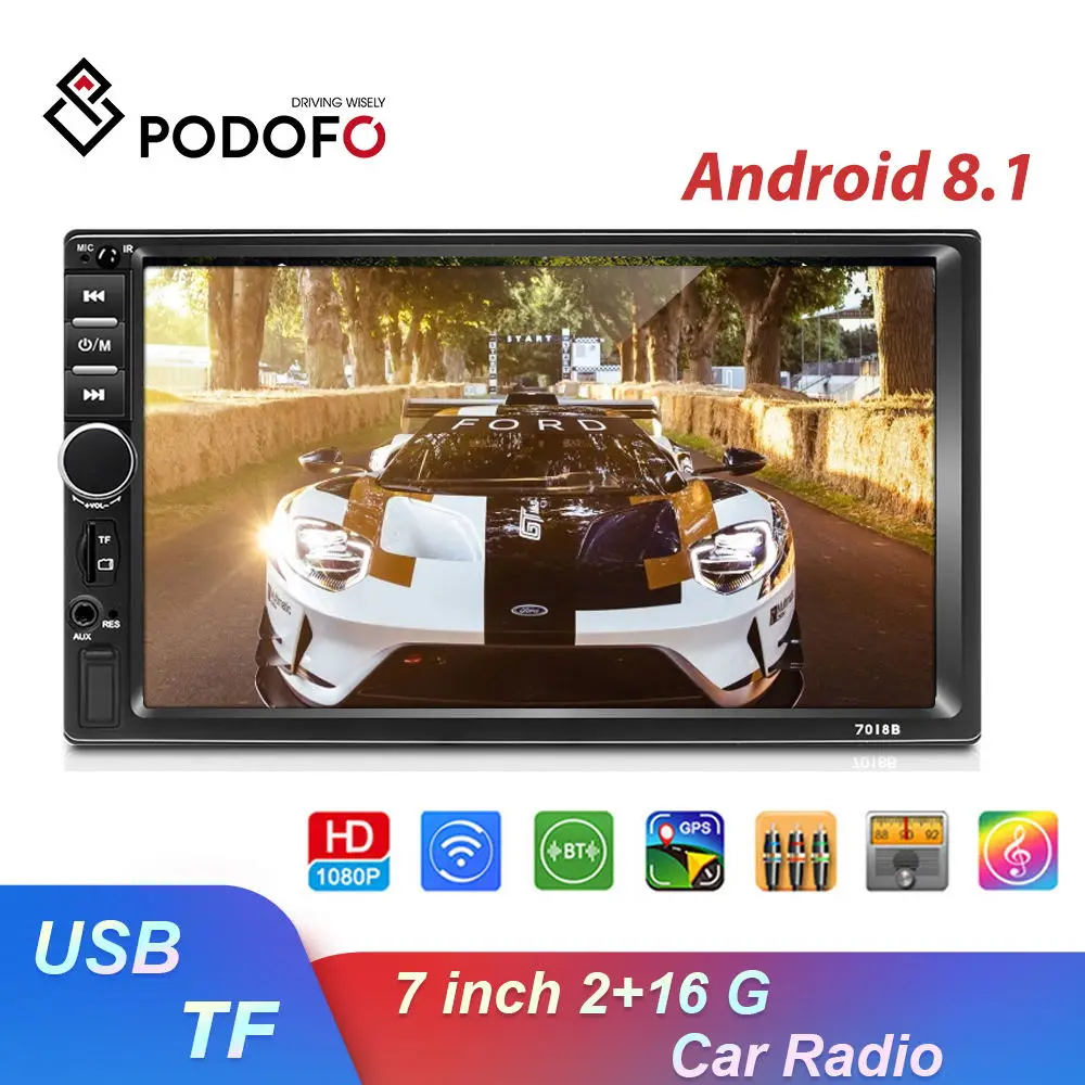 Podofo Android 8,1 Автомобильный мультимедийный игрок двойной din автомобильный Радио 7 ''Сенсорный экран gps аудио Wifi Автомобильный MP5 плеер Поддержка...