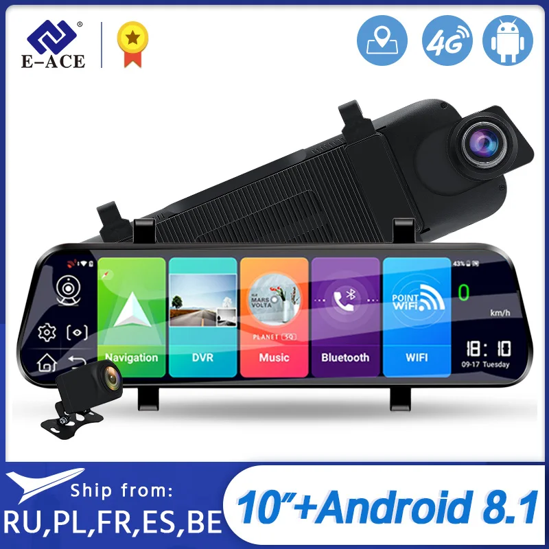 E-ACE D13 Автомобильный видеорегистратор 10 "ips сенсорный экран FHD 1080P видеорегистратор для Android 8,1 4G и wifi ADAS Автомобильная камера видео рекордер gps...
