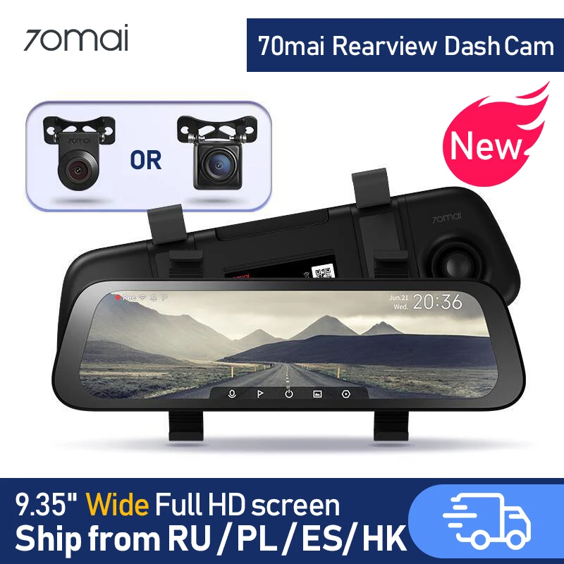 Новый 9,35 дюймовый полный экран 70mai камера заднего вида широкий 1080P авто камера 130FOV 70MAI зеркало Автомобильный рекордер поток медиа Автомобильный видеорегистратор