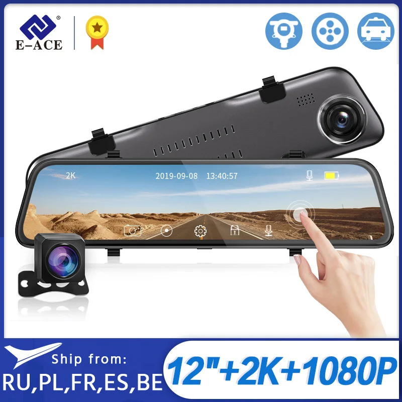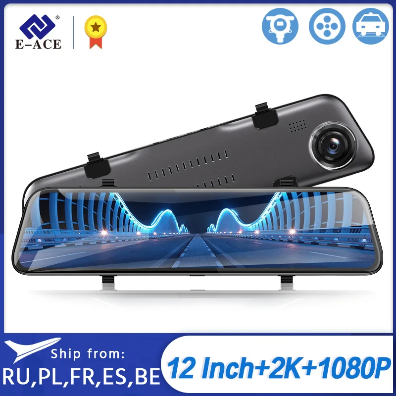 E-ACE A38 12 дюймов сенсорный экран Видеорегистраторы для автомобилей потоковый медиа-тире Камера зеркало 1440P видео Регистраторы двойной Len поддержка 1080P зеркало заднего вида Камера gps