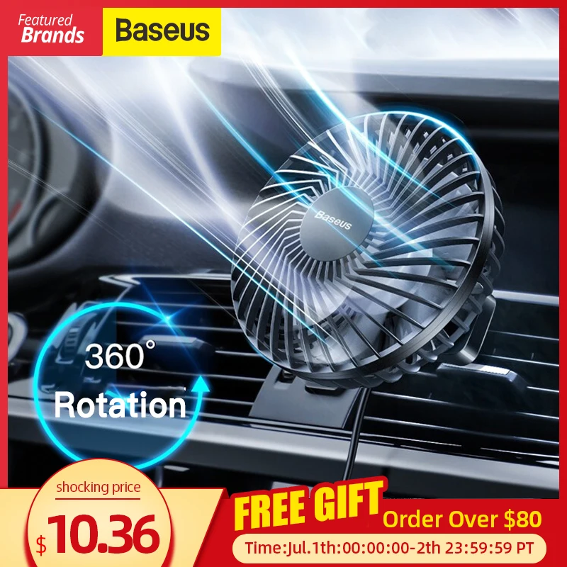 Автомобильный охлаждающий вентилятор Baseus, бесшумный автомобильный Кондиционер, вращающийся на 360 градусов охлаждающий вентилятор, автомобильный вентиляционный вентилятор для заднего сиденья, охлаждающий вентилятор USB