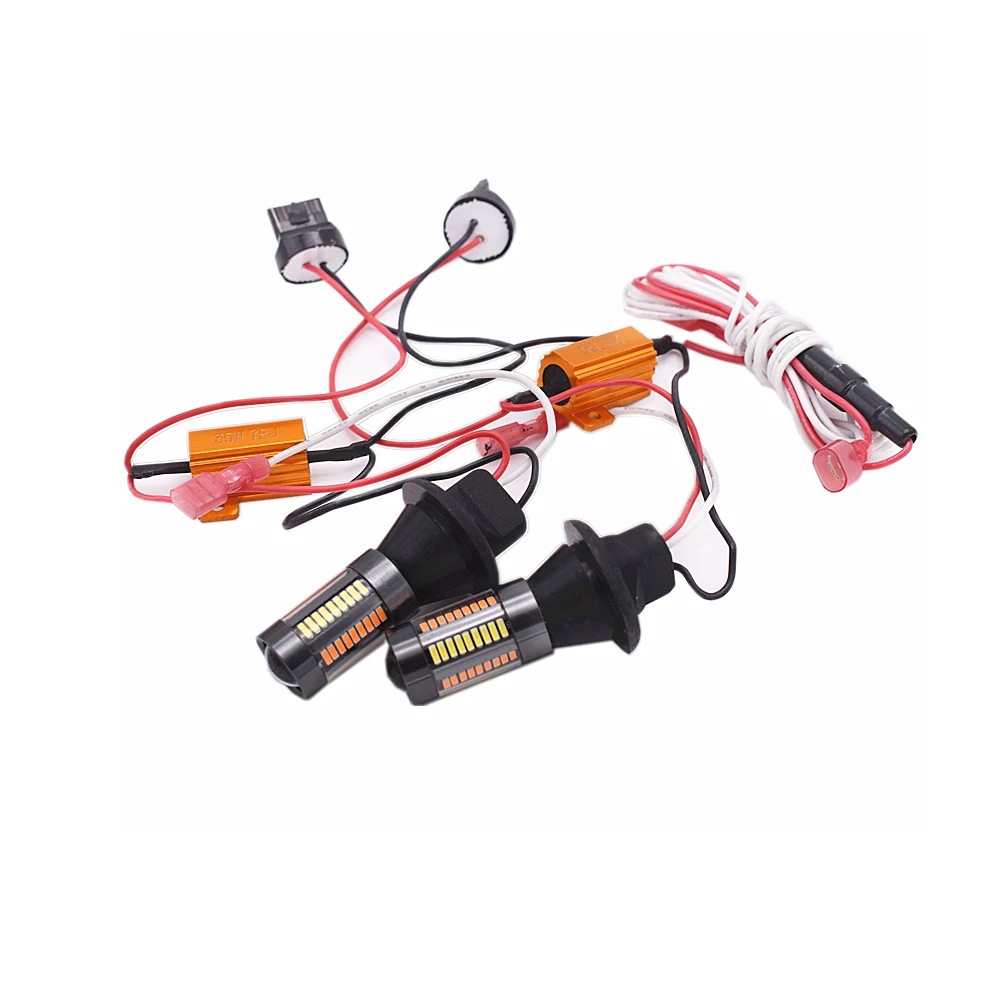 1 компл. T20 W21W Canbus 7440 4014 66 светодио дный автомобиля светодио дный днем ходовые огни указатель поворота внешний источник света двойной цвет