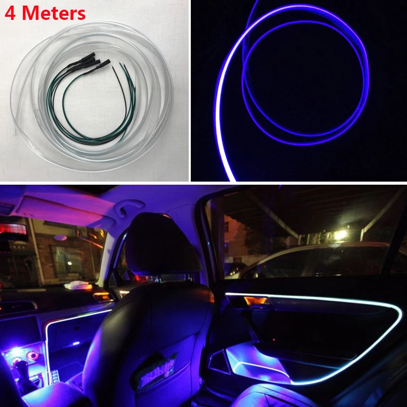Универсальный 4 м 12 В светодиодный светильник из оптического волокна для помещений, гибкий декоративный светильник для салона автомобиля, синий или красный светодиодный светильник