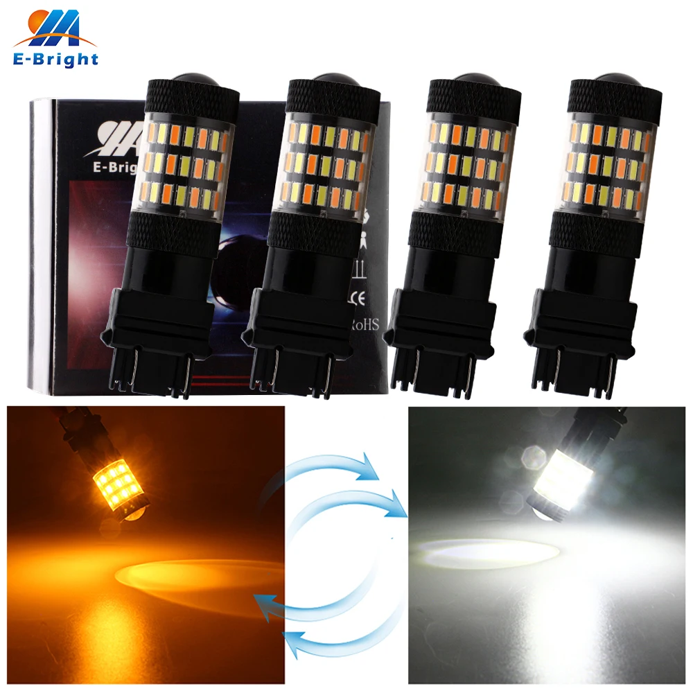4 шт 4014 60 SMD белый/янтарный 3157 T25 светодиодный лампы объектив Автомобильная сигнальная лампа Включите свет сигнал стоп-сигналы 12 V 600Lm 6500 K-8000 K