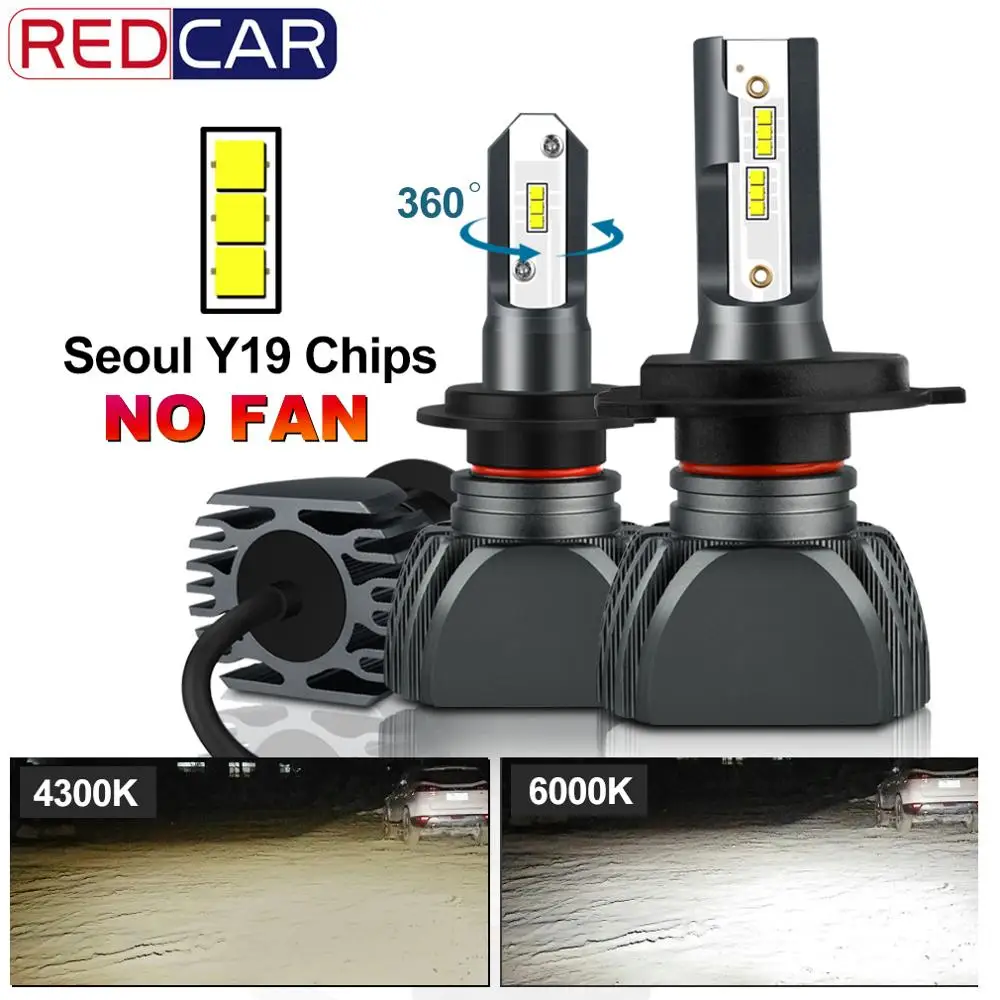 2 шт. безвентиляторная H7 Автомобильная фара Лампа H1 H3 H4 сеульская Y19 чипы Светодиодные лампы H8 H9 H11 9006 HB4 9005 HB3 H27 880 881 автомобильная светодиодная лампа
