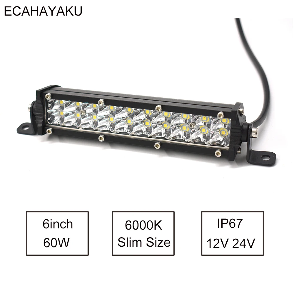 1 шт., автомобильный светильник ECAHAYAKU, 7 дюймов, тонкий размер, двухрядный светодиодный светильник, бар, 60 Вт, 6000 К, 12 В, для джипа Hummer SUV UTE, пикап, 4x4, внедорожный