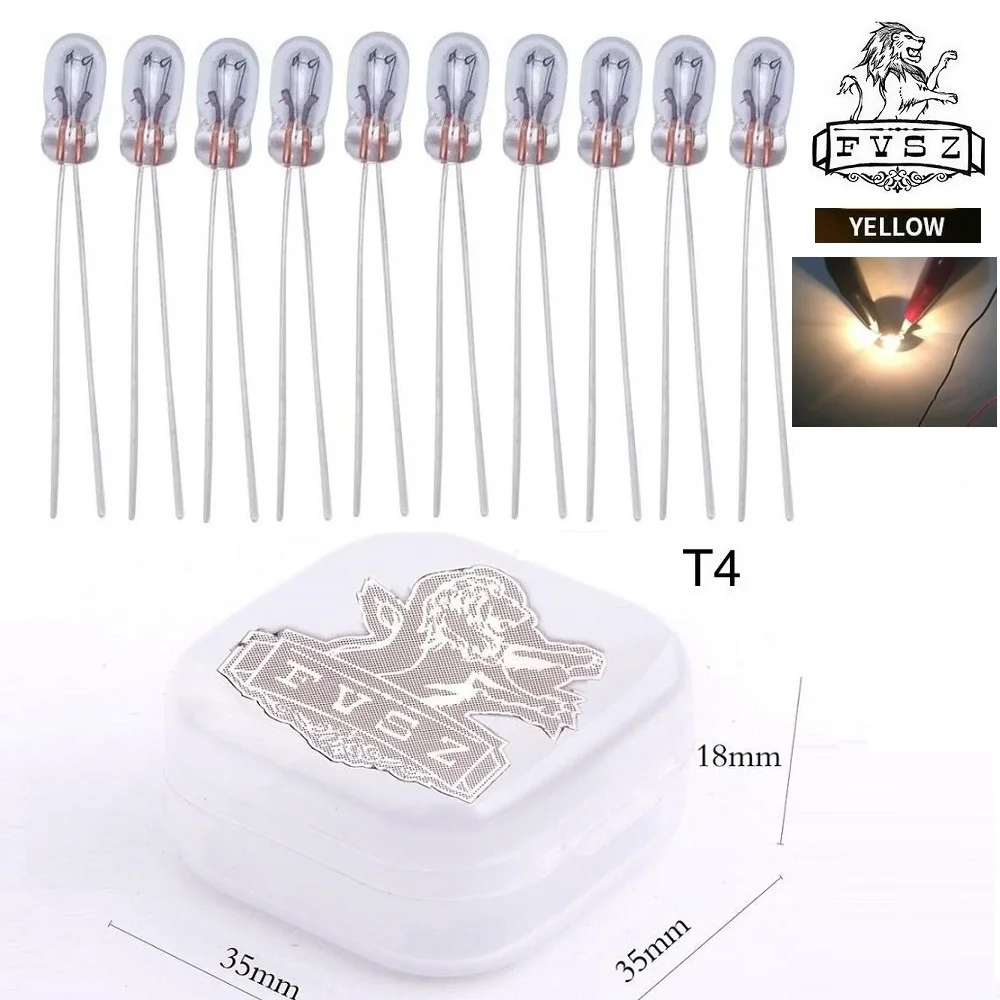 10 шт., T4, 14 в, 1,4 Вт, автомобильный инструмент, аудио шестерня, лампа, индикатор, светильник, лампы, t1, прозрачный стеклянный инструмент, светильник, желтый светильник
