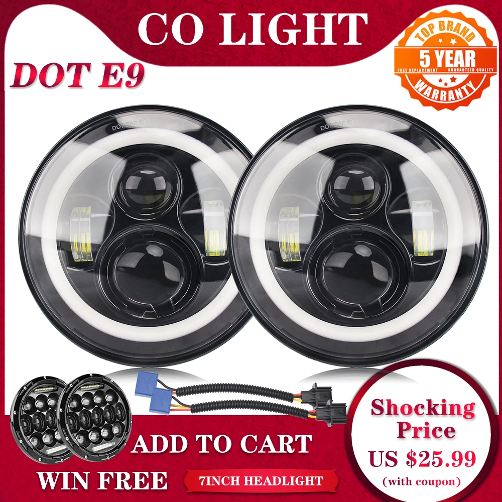 Светодиодный налобный фонарь CO LIGHT, 7 дюймов, 80 Вт, DRL, Halo Angle Eyes, светодиодный налобный фонарь 12 В 24 В DOT E9, высокий и низкий сигнал поворота для Lada Niva, внедорожный 4x4