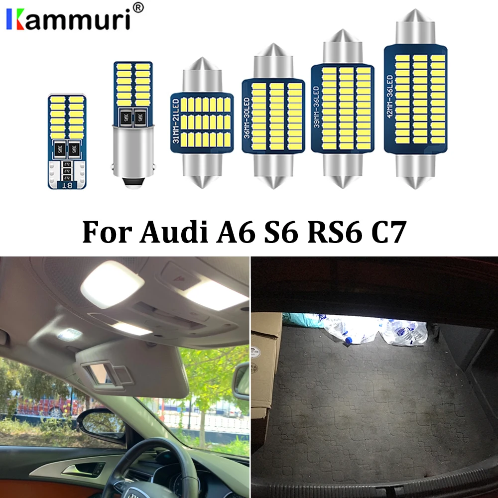 KAMMURI, 12 шт., Canbus, без ошибок, Белый светодиодный, внутренняя карта, купольный светильник посылка, комплект для Audi A6, S6, C7, 4G, седан, Avant Wagon (2012 +)