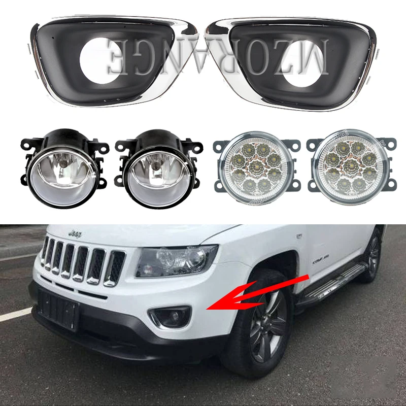 Для Jeep Compass 2011-2015 противотуманный светильник s светодиодный противотуманный светильник, галогенные передние фары, крышка противотуманных ф...
