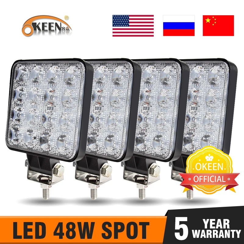 OKEEN 4 шт. светодиодный барный рабочий светильник 4 дюйма 48 Вт внедорожный рабочий светильник 12 В светодиодный светильник для грузовика 4x4 УАЗ светодиодная фара трактора светильник Точечный светильник IP67