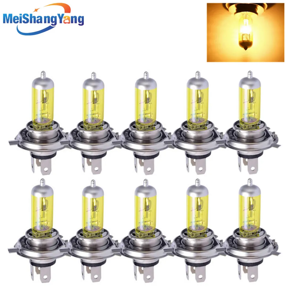 10 шт. H4 55 Вт 100 Вт 12 В, желтые противотуманные фары, галогенная лампа высокой мощности, фара для фар, Автомобильный источник света, парковочная головка, авто 60/55 Вт 3000 К