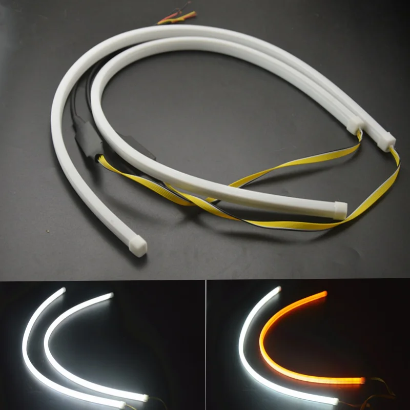 Автомобильный Стайлинг 2 шт. 60 см автомобиля Авто Янтарный Белый последующий поток светодио дный светодиодные гибкие DRL фары поворотник пер...