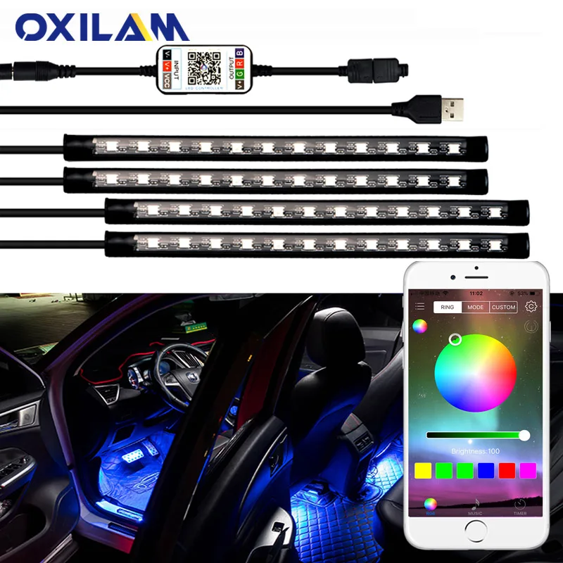 Светодиодные ленты Авто окружающего света приложение управление USB RGB интерьер Атмосфера лампы 5050 48SMD гибкий автомобиль светодиодные декор...