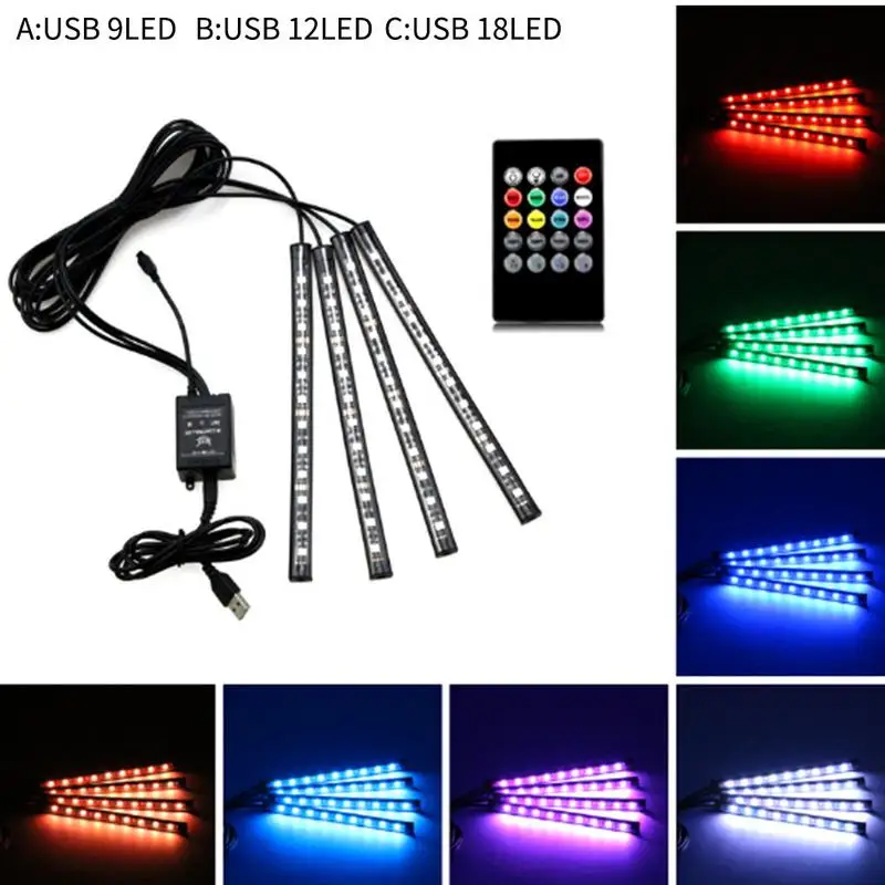Один для четыре автомобиля USB атмосферу света дистанционного Управление голос красочные атмосфера ноги света салона атмосфера неоновый Lighs