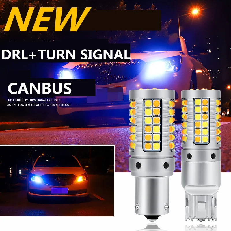Комплект из 2 предметов PY21W Bau15s BA15S 7507 T20 7440 T25 1156 WY21W Автомобильный светодиодный лампы дневного света светильник поворотник двойной режим DRL в...