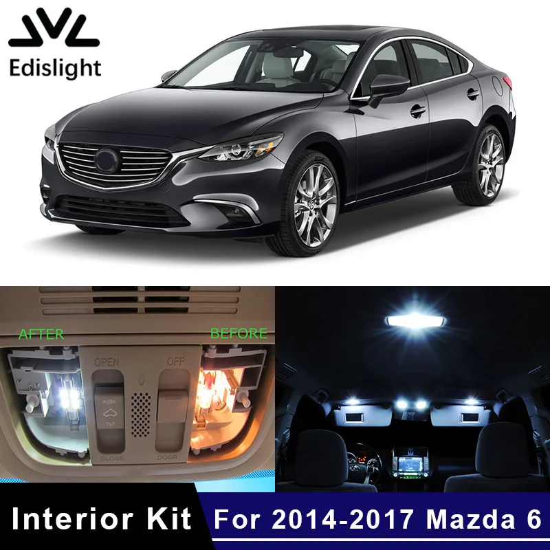 Edislight, 13 шт., белый, светло-голубой светодиодный светильник, автомобильные лампы, интерьерная посылка, комплект для 2014-2017 Mazda 6, карта, купол, ба...