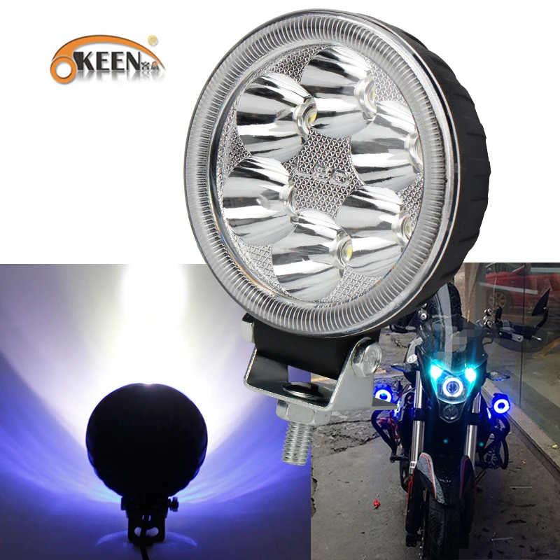 Okeen супер яркий 6 светодио дный 18 Вт Ангельские глазки рабочих свет фар мотоцикла 12 В 6000 К белого и синего цвета пятна Дальнего для Авто Мото