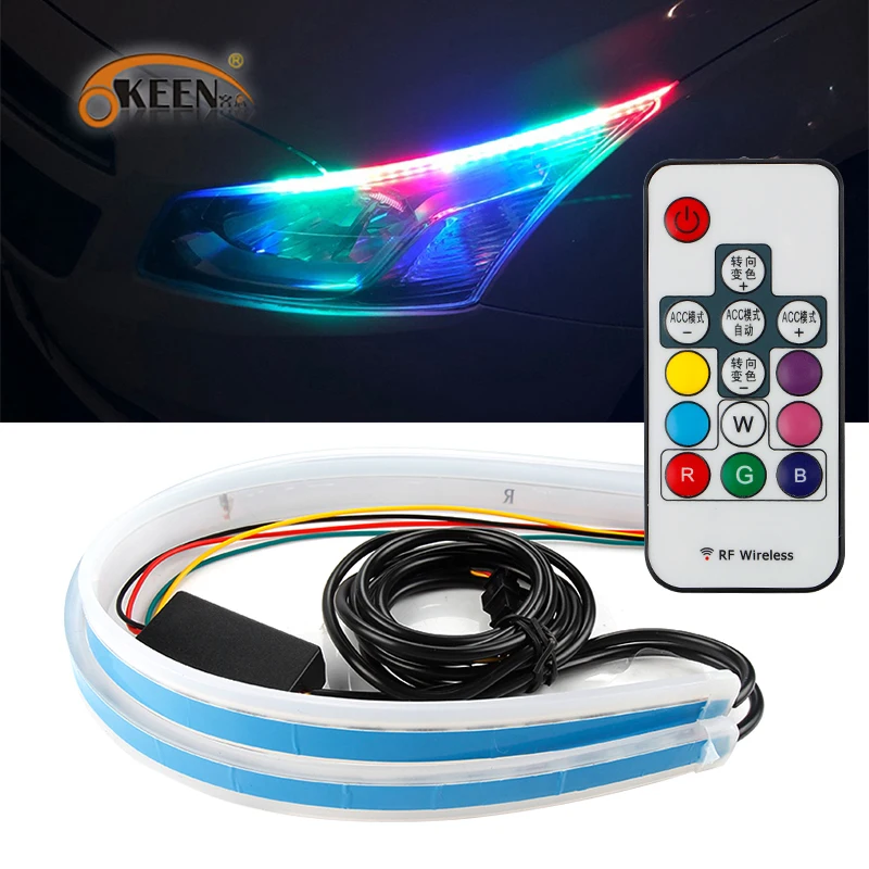 OKEEN автомобиля 12 V светодиодный DRL Габаритные огни RGB Светодиодные ленты лампы фар течет желтеют сигнала Гибкая универсальный для автомобиле...