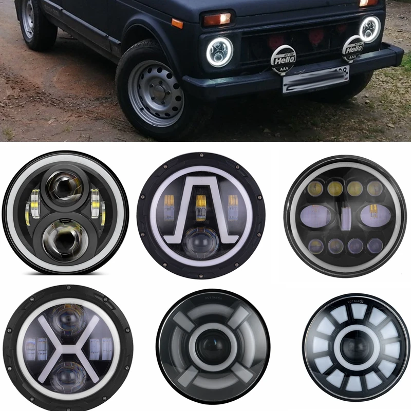 2x Lada Niva Urban Bronto 7 "светодиодный фары 60 Вт Hi Lo луч Halo Ангел глаз DRL Янтарный указатель поворота для Jeep Land Rover Harley